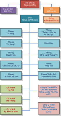 Bộ máy tổ chức của Công ty Tài chính TNHH MTV Công nghiệp Tàu thủy bao gồm: Hội Đồng thành viên, Ban Lãnh đạo Công ty và các phòng ban như sau: